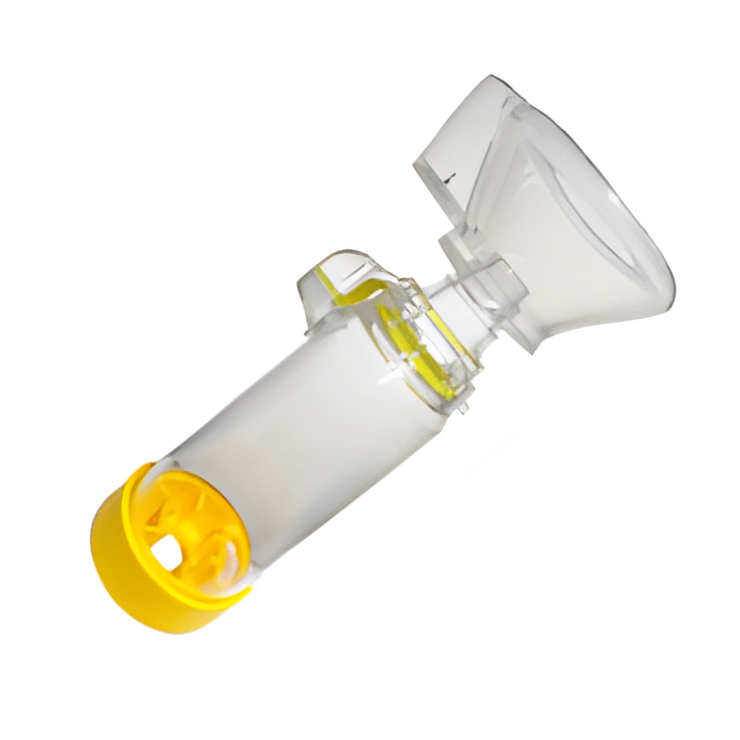 Aerocámara antiestática que optimiza la entrega del medicamento inhalado. Flexible y libre de látex para un ajuste cómodo y seguro. Compatible con la mayoría de inhaladores de dosis fija, es portátil, fácil de limpiar y de uso personal.
